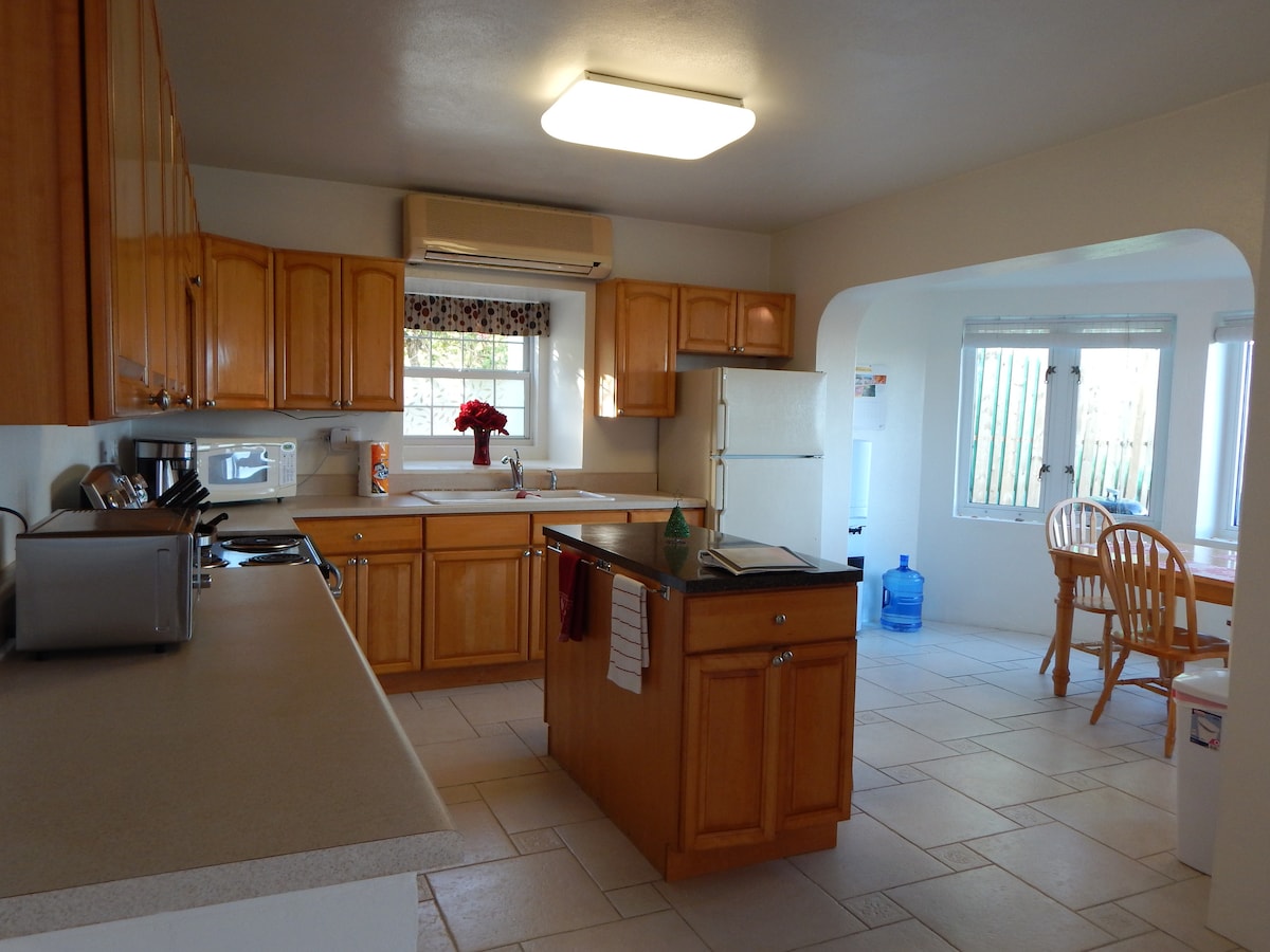 The pool house has a queen bed and its own bathroom + shower. It is next to our house in a spacious yard in a quiet residential neighbourhood. Bus stop is a 3 minute walk, John Smith's Bay beach 5 minutes and grocery store 12 minutes away. We also have a Labrador that roams the property. There's cable tv (includes HBO and Showtime) free wifi. Please see our other rental on the property "Las Brisas apartment with a pool" as an alternative (has a full stove) or if you are travelling with friends.