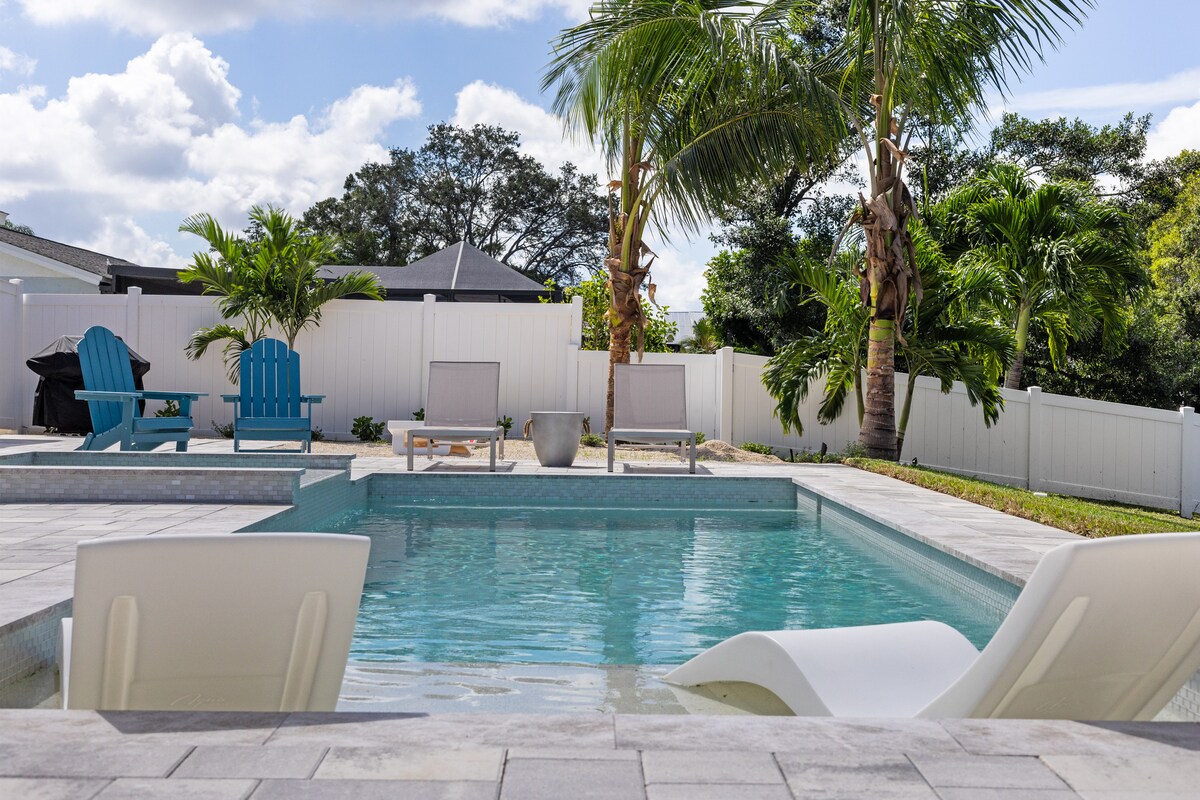 Imagine life in a tropical oasis-surrounded by palms trees, turfed lawn and putting green while enjoying the Florida sun relaxing your private saltwater heated pool with extended sun shelf. This 3 bedroom/2 bath 1940s bungalow is a great place to relax and unwind with your own resort style backyard. The fully equipped home, located between downtown Bradenton and Anna Maria Island offers fun in every direction. We guarantee you'll want to stay awhile!