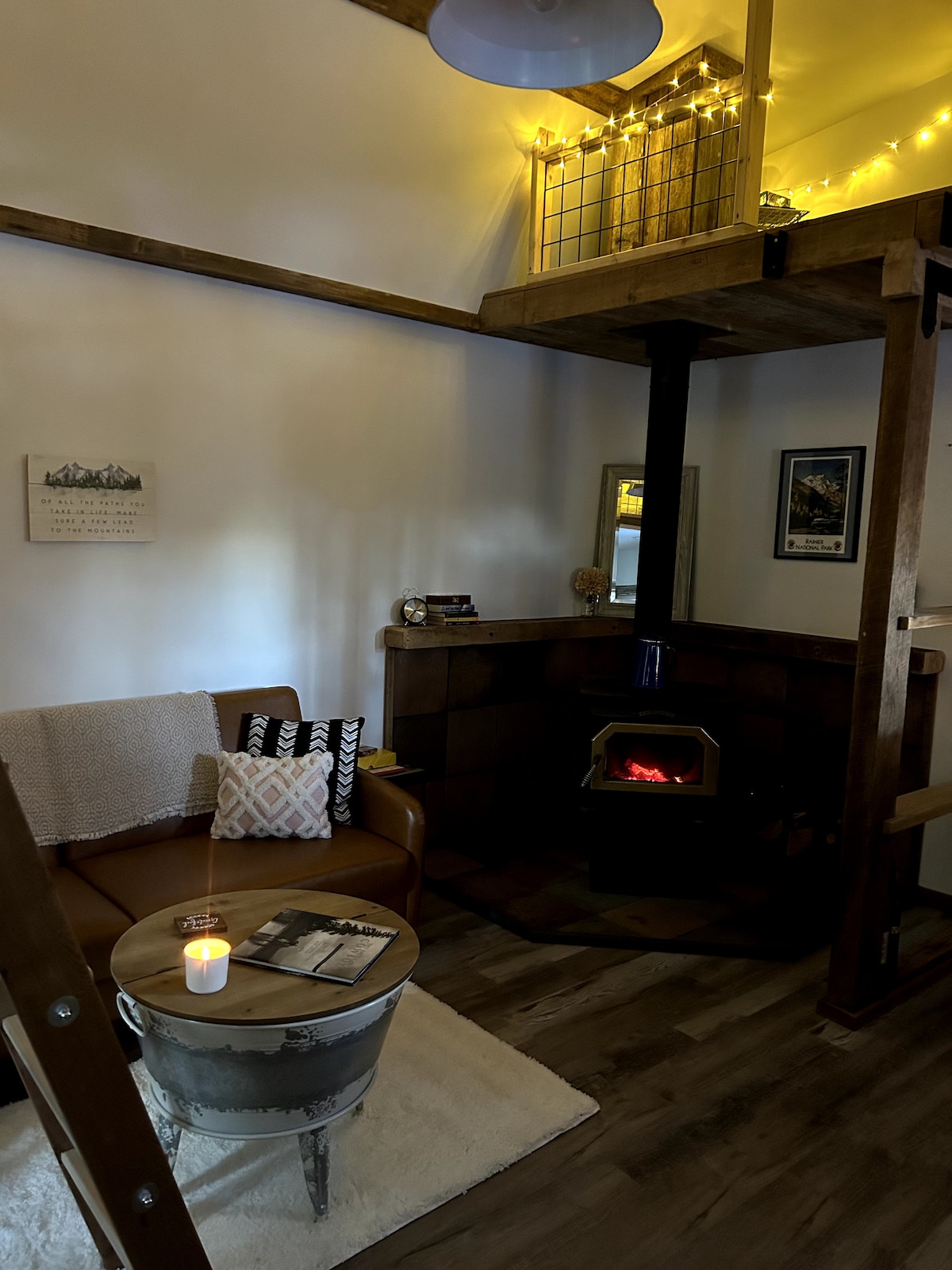 Tiny home tucked in the rural Forest Glade area of Machias, Snohomish. Only 7 minutes from Machias Meadows & Pretty Bird event venues. Warm up by the woodstove w/ a good book, or roast s’mores at your private fire pit, and sip coffee on the porch as our resident deer pass by. Whether your here for wedding, some outdoor adventure, or a lazy lake days, you'll be tucked away in the woods, while being near it all. Unwind with a glass of wine and soak in the stillness of this peaceful rural retreat.