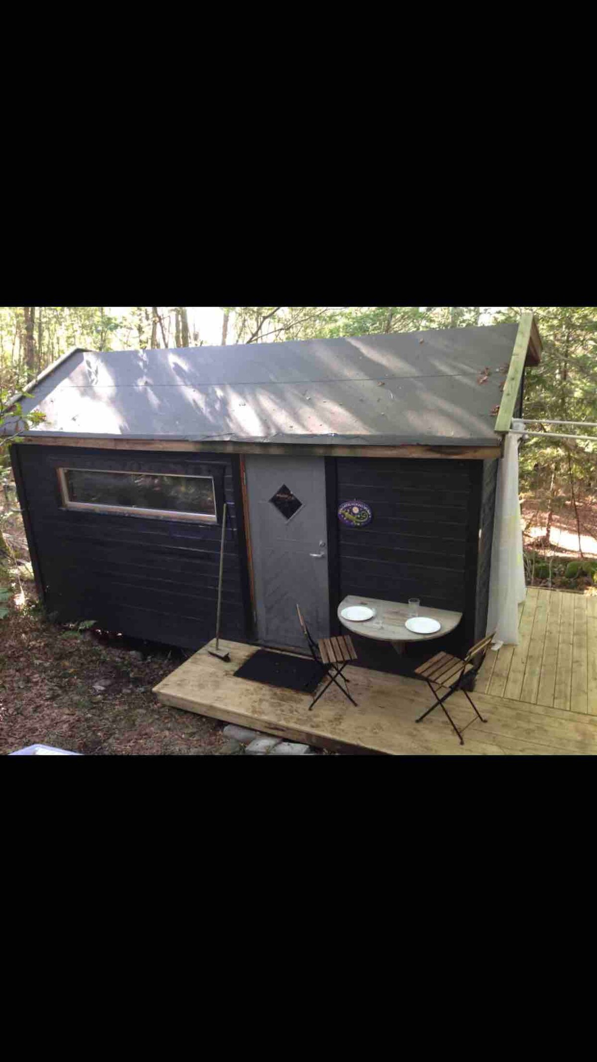 Quiet peacefull place to sleep in the middle of the forrest. Beautifull wiev from fire place with sitting places. Full kitchen at the dock , with 14 foot boat with engine. Outdoor toilet built into the mountain . 3 kayaks.