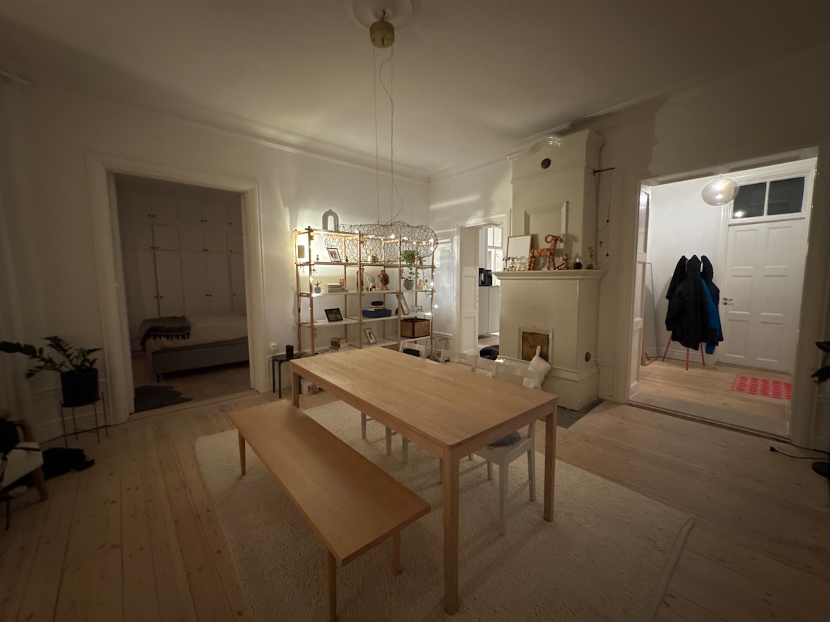 Welcome to rent a unique and very elegant apartment in central Stockholm located on the 4th floor. It is located in the central yet quiet heart of Stockholm. The apartment has two bedrooms, two balconys, three fire places and a very spacious and social look and feel. It includes all the amenities you need and is surrounded by a variety of restaurants, cafés, shops and commuting options.
