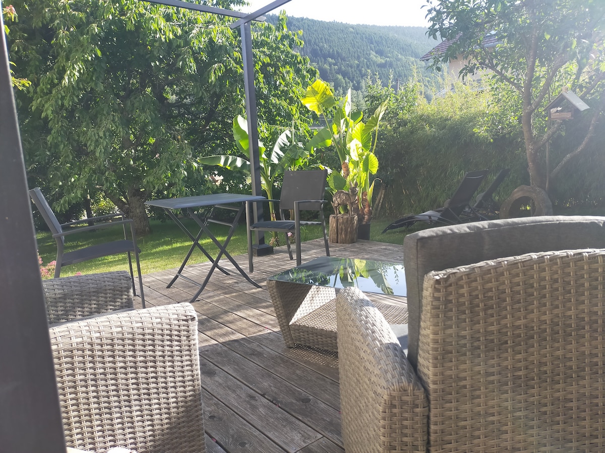New 45 m2 cocooning cottage with sauna and private 3-star gym and 3-star gîte de France, ideal for two people, (independent entrance and access not overlooked) with a breathtaking panoramic view from your private terrace over the Cleurie valley and the village of Tholy. Located at an altitude of 700 m in a very quiet site on the heights of Tholy, in the heart of the Hautes Vosges. Close to the forest, many hiking trails and mountain bike trails.