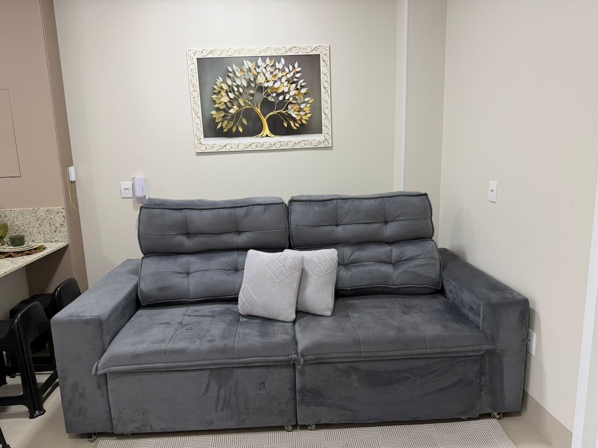Practicality, comfort and privacy. Modern and complete environment for your rest. Ideal for a couple or a person. Furnished and Equipped: 32" Smart TV, Internet, air-conditioning, refrigerator, cooktop, kitchen utensils. Security: Parking, electronic gate, electric fence, surveillance cameras. 5 minutes from downtown Sorriso. Close to supermarkets, pizzeria, pharmacies, ice cream shop, fuel station, Leisure in Lago Park.