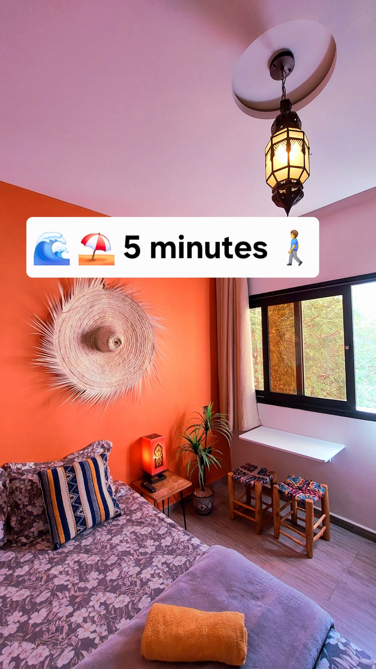 Superhost, welcome to this beautiful studio room with Moroccan decor, private bathroom and entrance, near the beach, shops, restaurants... Beach is a 5-minute walk away near "Beldi Fusion Kitchen" restaurant. Home is next to "Place Al Amal" + "Vallée des Oiseaux" garden. Everything is within walking distance: cable car, museum, no need for public transport (see Google Maps, area). Reservation by request, we'll respond quickly, Please specify if you are single, Moroccan or European couple...