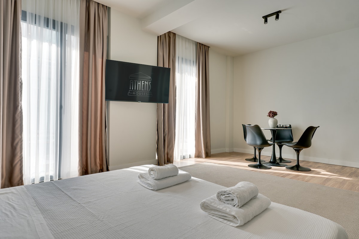 Welcome to this stylish and modern ground-floor apartment, located in the heart of Kypseli just steps from shops, cafés, and restaurants. It features one cozy bedroom, a fully equipped kitchen for delicious meals, a comfortable living area, and a smart TV. Ideal for couples, solo travelers, or business guests. The apartment is part of a boutique building with shared amenities including a gym, jacuzzi, sauna, and meeting room offering both comfort and a touch of luxury for your stay in Athens.