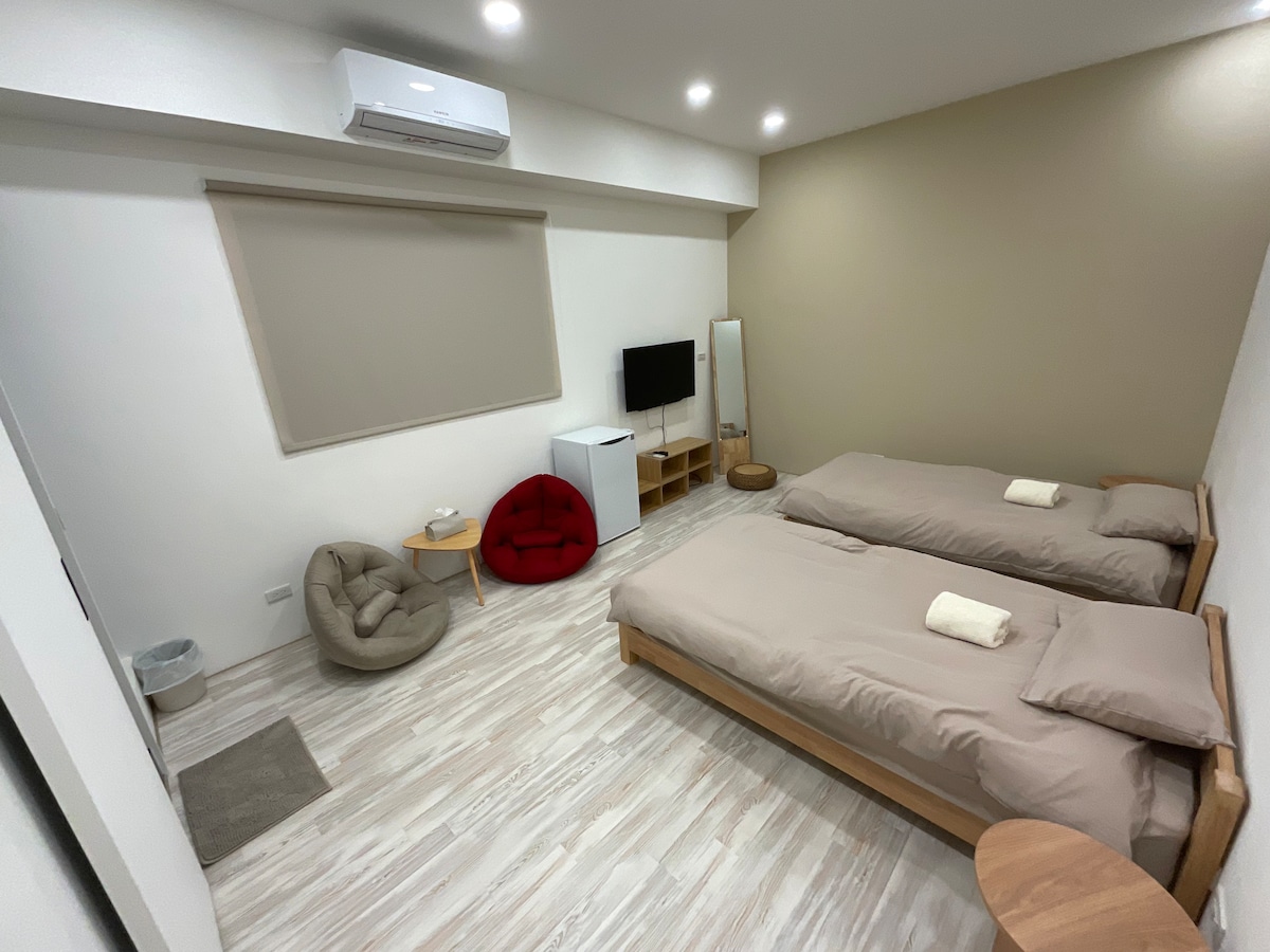 台南Tainan。中西居Gu-Hostel。灰階雙人房。可加一床