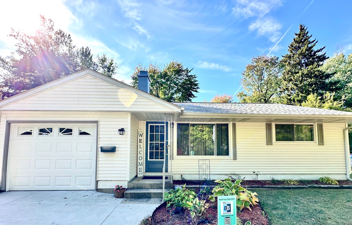 3 bedroom, 2.5 bath home, 3 blocks from Lake Michigan, 2 blocks to Kids Corner playground, 10 min walk downtown. 6 person hot tub! Super fun bench bike! Outdoor firepit All deluxe memory foam mattresses. 2 kings, 2 fulls, 2 twins. Sleeps 8 adults comfortably, 10 sharing full beds. Enjoy bikes (including bike for 2, bench bikes), 2 kayaks, picnic supplies, books, toys, and games. Foosball Giant Kerplunkit game Board games Kid and pet friendly. Sledding, iceskating nearby
