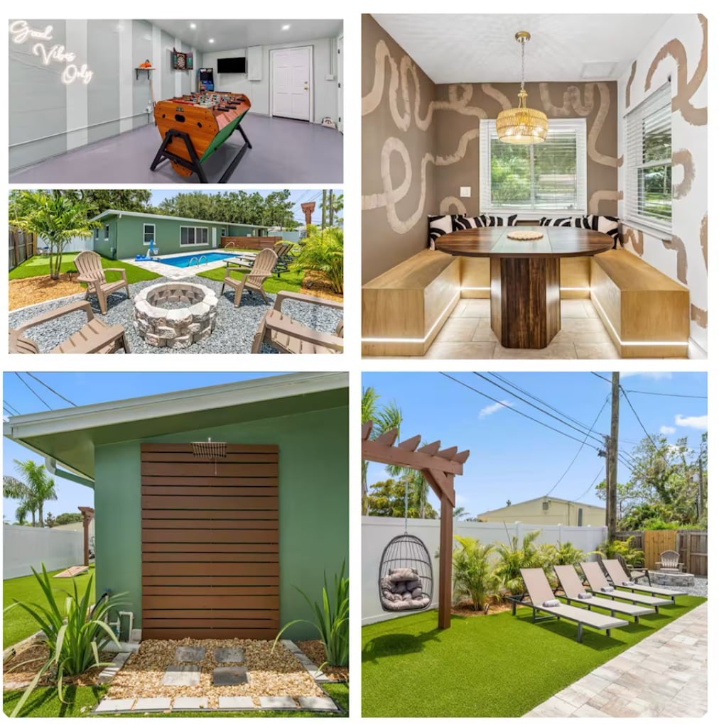 ✨ Welcome to Your Stylish Florida Escape — Heated Pool, Resort Vibes, and Endless Entertainment✨ Lovingly designed St. Pete retreat crafted for comfort and connection. Enjoy a private pool, cozy firepit, outdoor movie theater, pool table, and karaoke machine for endless fun. Sip tropical drinks from the margarita maker and unwind in luxurious rain showers. With stylish décor, a fully equipped kitchen, and a coffee/tea bar, every detail was thoughtfully created to make you feel right at home.