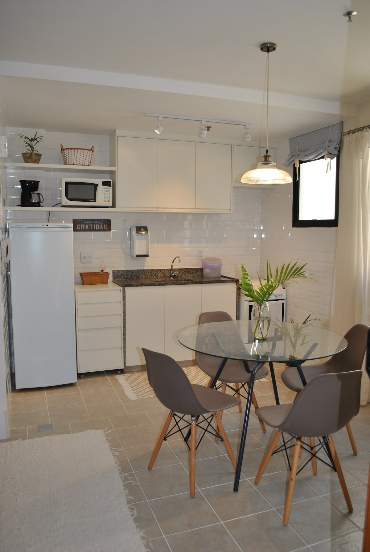 Attention lisez attentivement : Não fazemos desconto, por favor NÃO INSISTA Duplex studio neuf et désigné par un architecte : un seul lit double avec draps de qualité, un sofa convertible ( 1 place) et une Cuisine amenagée. Terrasse avec table et chaises. Immeuble de luxe avec salon et salle à manger collective, terrasse de Home Office avec wifi, laverie avec 4 machines à laver/sécher et Roof Top avec piscine collective et vue sur le Christ Redentor