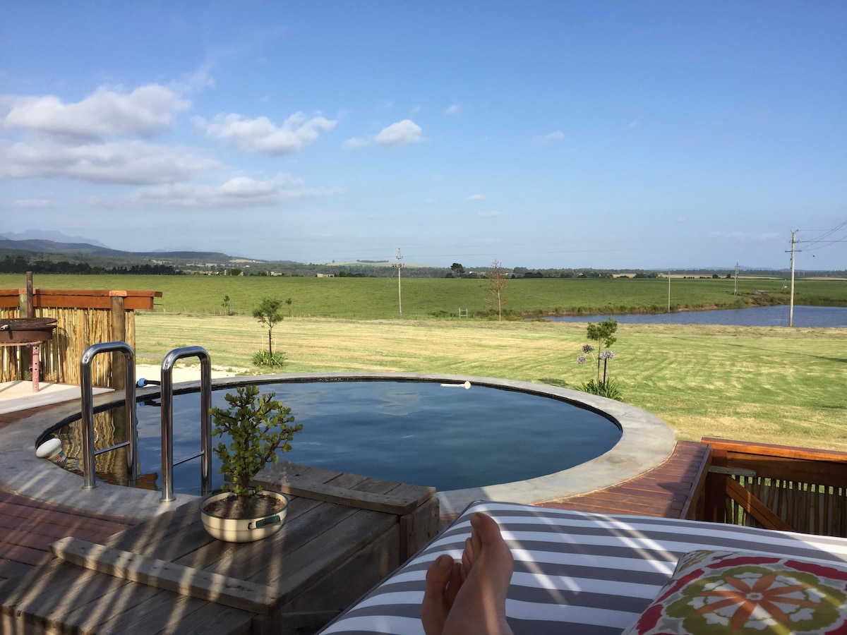 The Dairy is literally an old milking parlour which has been turned into spacious accommodation on this working dairy farm. The unit has a more modern feel to it than the Farmhouse. Lovely views of the dam & Outeniqua mountains and a big "farm pool" with deck. Wood-fired hot tub on a wooden deck on the patio.