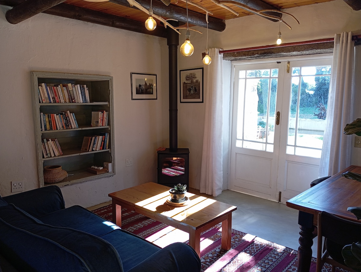 Farm cottage with an eco pool and fireplace:) The cottage is a unique old barn cottage with exposed wooden beams, stone walls and a cozy feel of our farm's history. The cottage consists of a living area with large double doors opening out onto the garden with an outside shower and pool. The kitchen boasts a Smeg stove and all the necessities to create beautiful meals. The bedroom has a queen-sized bed in a loft bedroom and an extra double bed is available downstairs. . Firewood is included