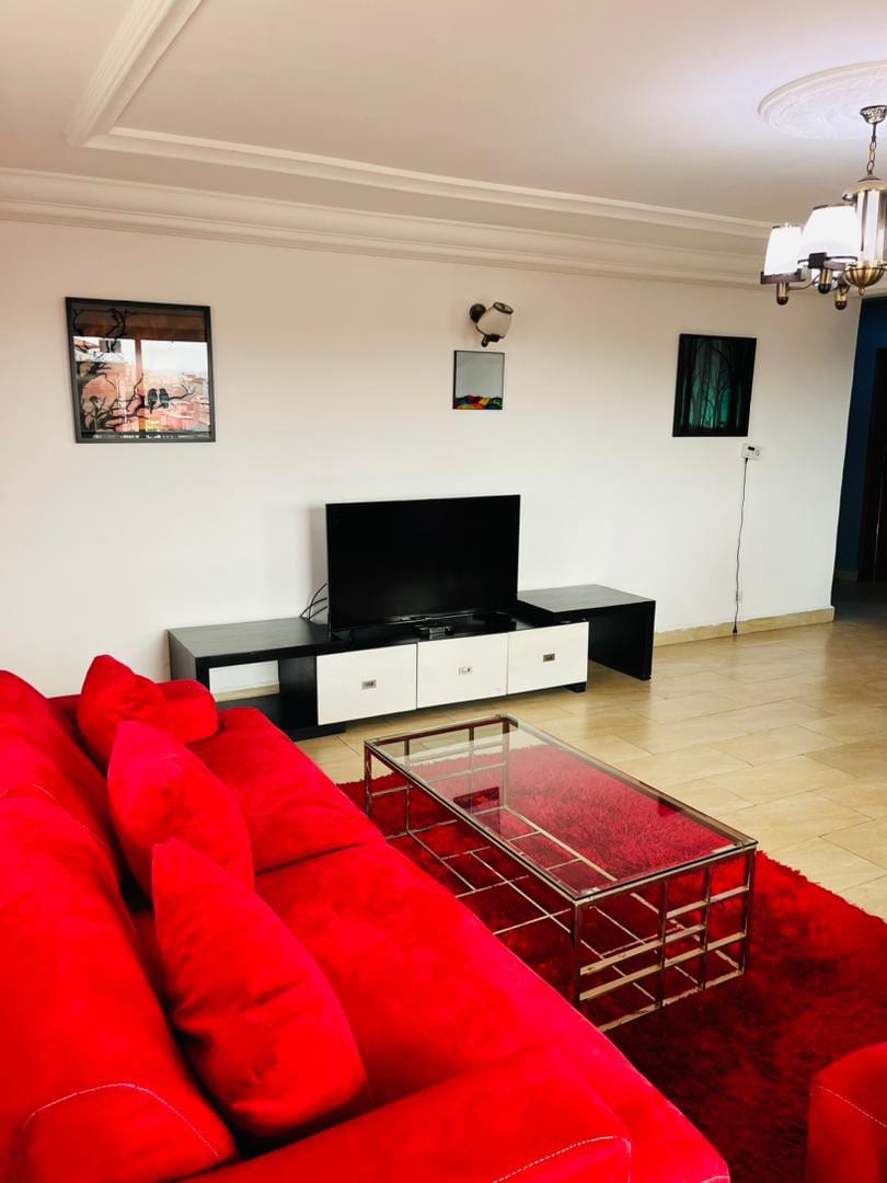 Furnished two-bedroom apartment located in Makepe, Douala, on the side of the road. Fully equipped, it is ideal for courses and long stays. Equipped with two balconies, unlimited high-speed internet (fiber optic), Canal Sat, a Smart TV with Netflix, Amazon Prime and YouTube integrated, 24/7 security, surveillance cameras in the building, free parking, hot water tank, washing machine, equipped kitchen, air conditioners in all rooms, two fans, generator.