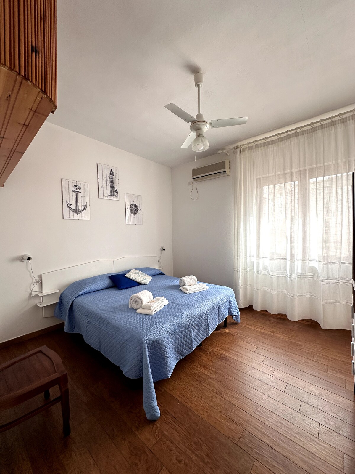 The apartment located on the second floor is cozy inside and equipped with the comforts for a relaxing vacation. It also has a panoramic covered terrace, from which you can enjoy a wonderful sea view. It consists of a living room, well-equipped open kitchen, double bedroom with A/C, bedroom with single beds with A/C, bathroom with shower and washing machine, on the second floor small bathroom (without bidet), terrace with table and chairs. CIN (National Identification Code): IT111008C2000P7023