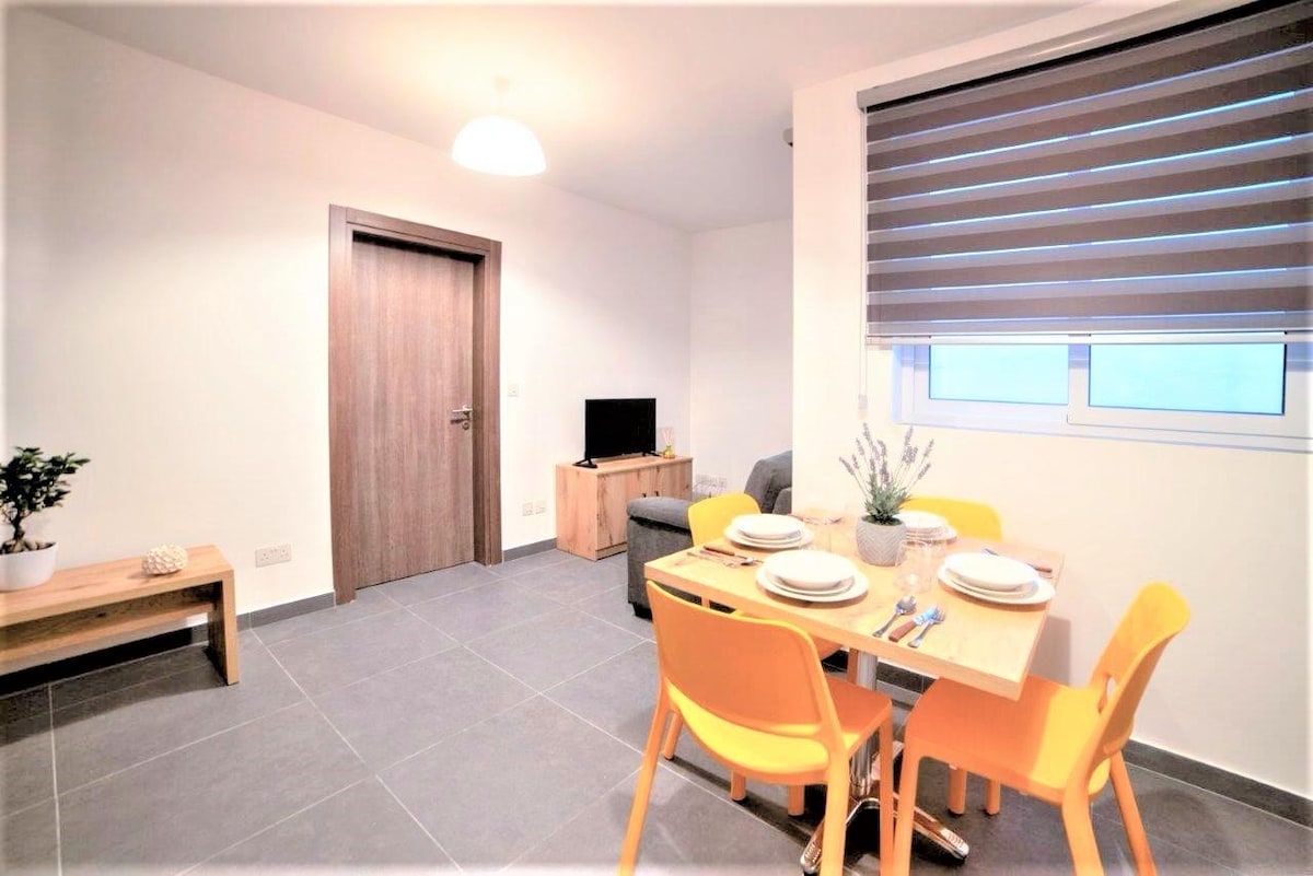 Orion Court Flat 4D , A nice romantic getaway to Malta. A stunning brand new one bedroom apartment, fully equipped. Fully air conditioning and washing machine. Fully equipped kitchen with dishwasher, microwave and coffee machine. A sensational living room with 50"Android Tv with access to multiple channels, streaming apps and wifi included. It has a lovely balcony with armchairs and a table.
