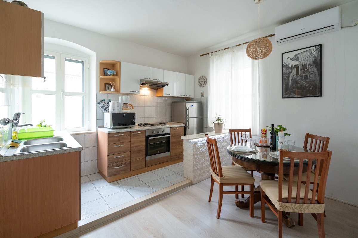 Upscale, modern, and recently refurbished one bedroom apartment in the heart of Split. The apartment is only a 5 minute walk (400 meters) from Split’s historic Old Town and Diocletian Palace, bars and restaurants, but yet in a quiet and serene residential neighborhood strategically nestled away from the city’s bustling traffic. This apartment is ideal for couples, travels with a friend, and solo travelers looking to work remotely or solo explore the city of Split.