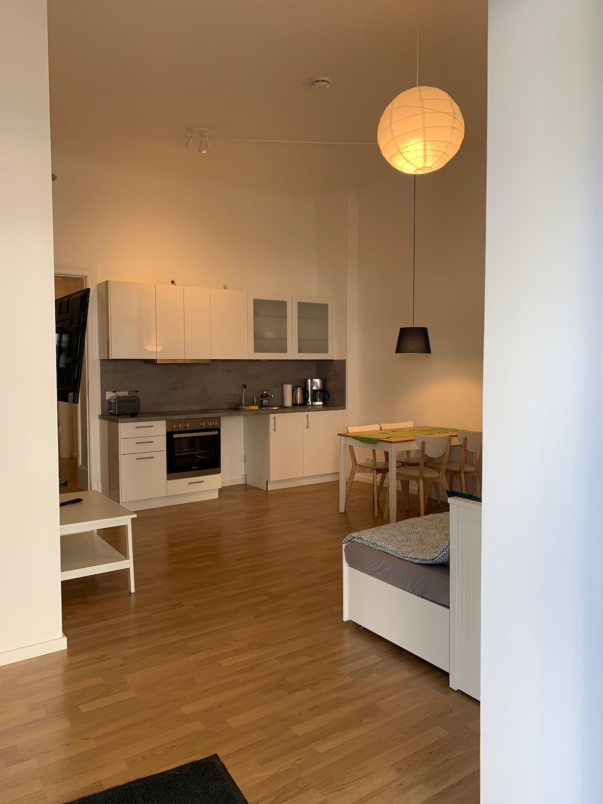 Warm & quiet 40sqm apartment with private entrance in a Bauhaus-style townhouse. 🌡️ Underfloor heating fills the space with gentle warmth. Soft daylight from the 4m sliding window sets a calm mood. Step outside to the cozy Terrace for your first morning coffee, feeling the crisp air and peaceful garden around you. Perfect for slow mornings & cozy evenings. ⚡ Very fast WiFi · 👥 2 guests · 🍳 fully equipt Kitchen · 🧺 Washing Machine
