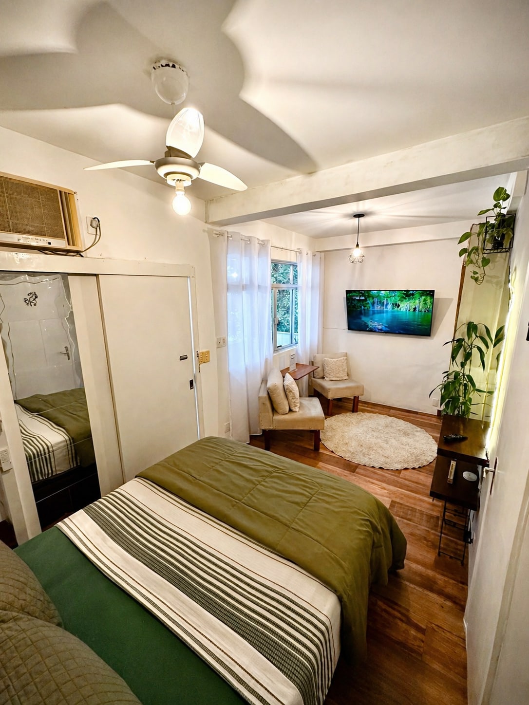 Our space was renovated in 2022. With a sophisticated and modern design proposal, it was designed for the exclusive use of AIRBNB. To ensure your night's sleep, we've thought of every detail: blackout curtains, queen bed and split air-conditioning The space also has a fully equipped kitchen, work area, and a large bathroom with a gas shower. Strategically located in the heart of Flamengo, the neighborhood offers easy access and travel to the main tourist attractions.