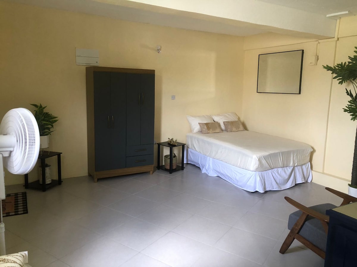 Butterscotch apartment is only 1 minute walk away from public transport, 1 minute walk from the basketball court, 8 minutes walk from the public gym and 5 minutes on foot to beautiful and bustling Campden Park Industrial Estate. Nestled between two unspoilt beaches - Lowmans Bay and Questelles. This fully furnished apartment is protected by burglar bars, equipped with modern amenities, A/C and herbal garden for those into gardening. Let your adventures begin in SVG.
