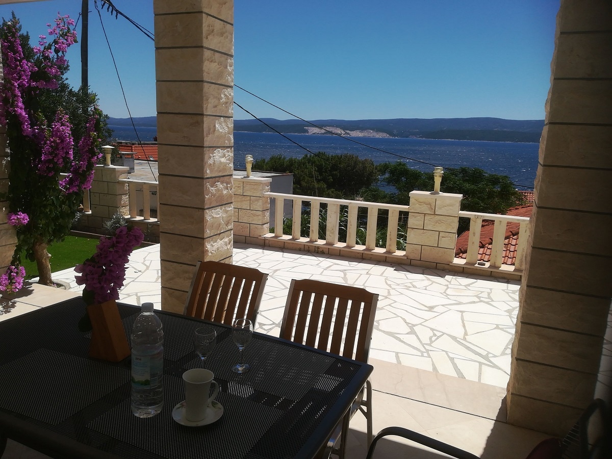 This beautiful apartment for up to 5 persons is perfect gateway for your holidays. Apartment is situated on the top floor of the house with amazing seaside view and cozy balcony with a table and 6 chairs. Two rooms with double beds and additional sleeping place in the living room will be enough for up to 5 persons. What is extra is amazing pool side next to the house, exclusively for your unlimited use (private) where you will be able to enjoy best Seaview around directly from the infinity pool.