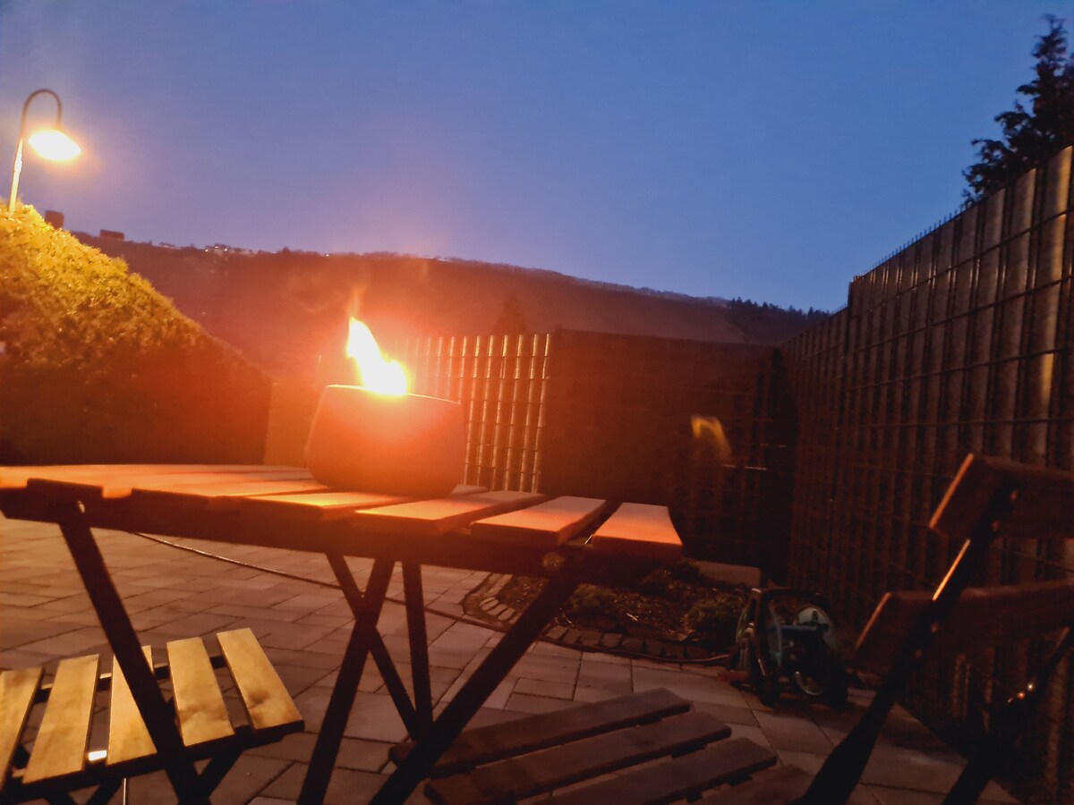 Relax in your little retreat on the Mosel. From this wonderful place in a quiet side street of the mountain village Starkenburg you can start hiking, go wine tasting, simply relax or work remotely. Let the distant view and nature inspire you. The old half-timbered house has been completely ecologically renovated and is simply cosy including a wood stove. Available (fee) Breakfast in the café opposite, e-bike hire, panorama sauna, wine sales