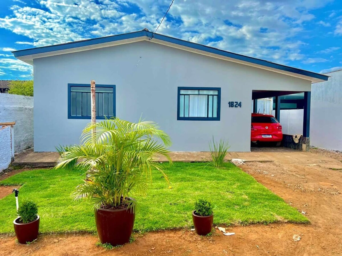 Abrace a simplicidade neste lugar tranquilo e bem-localizado. A quatro quadras da av. Brasil, próximo ao parque de exposições, perto de bancos, Farmácias, supermercados, cafeteria, lojas… Uma casa com equipamentos de segurança, murada com cerca elétrica e câmeras área externa, Wi-Fi.
