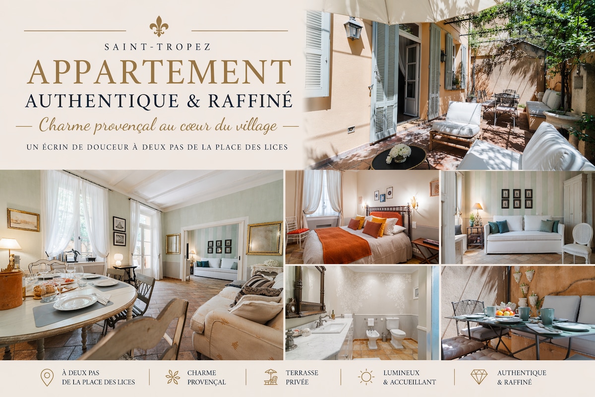 Stay in our recently renovated and professionally decorated Saint-Tropez village apartment, just 30 seconds from the famous Place des Lices. Enjoy two terraces, a bright living space, secure designated parking for guests, and step-free access with elevator. Walk to restaurants, cafés, bakeries, boutiques, and the harbour within minutes, while Les Graniers beach is about an 11-minute walk away. Start the day with coffee on the terrace and return for a glass of wine after the beach.