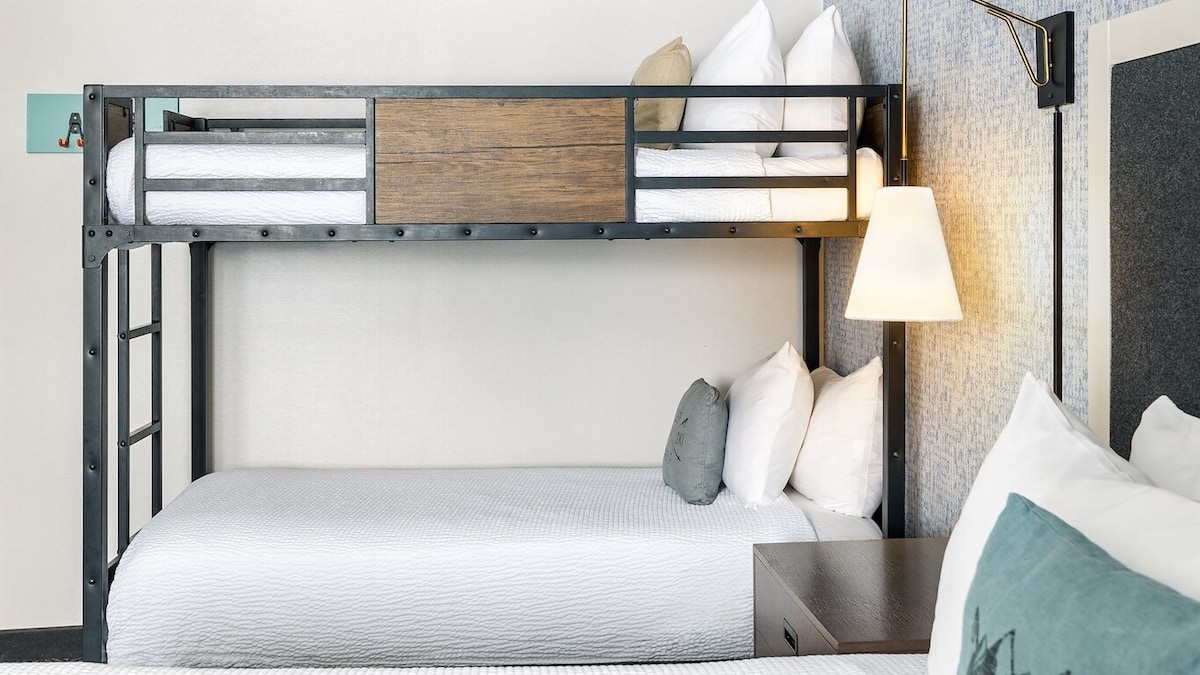 Indulge in our 1-bedroom Deluxe Suite, 840 to 888 sq. ft., designed to comfortably host up to four guests. The suite features a luxurious king bed, a queen sleeper sofa, and a private balcony or patio for serene relaxation. Enjoy the convenience of a fully equipped kitchen, an in-unit washer and dryer, and modern amenities such as a jetted tub, fireplace, and complimentary Wi-Fi. Additional features include a hairdryer, in-room safe, DVD player, stereo, and television.