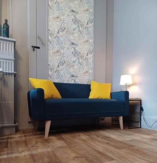In an old building with a common courtyard (patio style) in the very center, this apartment is located on the second floor of a small quiet condominium. Spacious (60 m²) and very bright. It consists of a large living room with equipped kitchen (oven, microwave, washer-dryer, TV, etc.), a dining and living area, a large bedroom with new bedding (queen size) and a bathroom with shower. Basic products are available Parties and gatherings are not allowed.