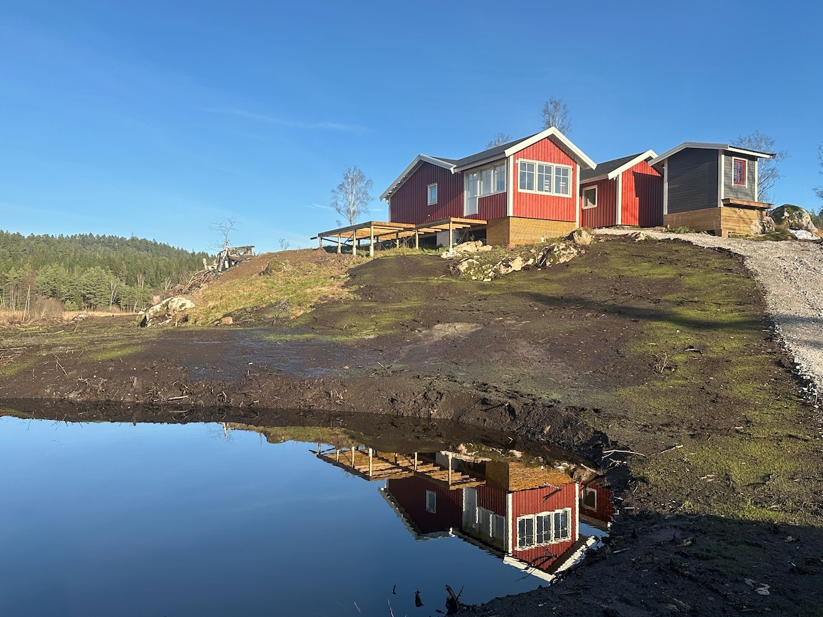 Welcome to our accommodation, just 100 meters from the sea! Here is a newly built A-frame house with panoramic views over the sparkling blue sea. The accommodation is modernly decorated and filled with natural light. It's the perfect place to relax and enjoy beach activities. On the private sun deck, you can enjoy the sun, swim in the hot tub or grill the evening's dinner. Explore the surrounding nature or take the trail 100 meters down to Hakefjorden for a refreshing swim. Book now and create memories for life!