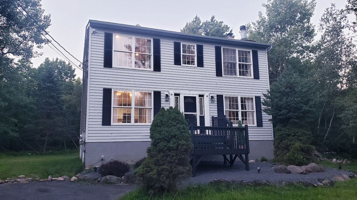 The Woodland Cottage is a modern, family-friendly vacation rental in the platinum club community of Lake Naomi, in the Poconos Mountains. This 3-bedroom, 2-bathroom cottage features a comfortable living area stocked with games, puzzles and books for kids of all ages. Relax in the wooded yard with deck, grill, and fire pit. Enjoy the comfort of new HVAC system, with individual units in living area & each bedroom. Bathroom linens and bedding provided. 1 pack 'n play & 1 high chair also available.