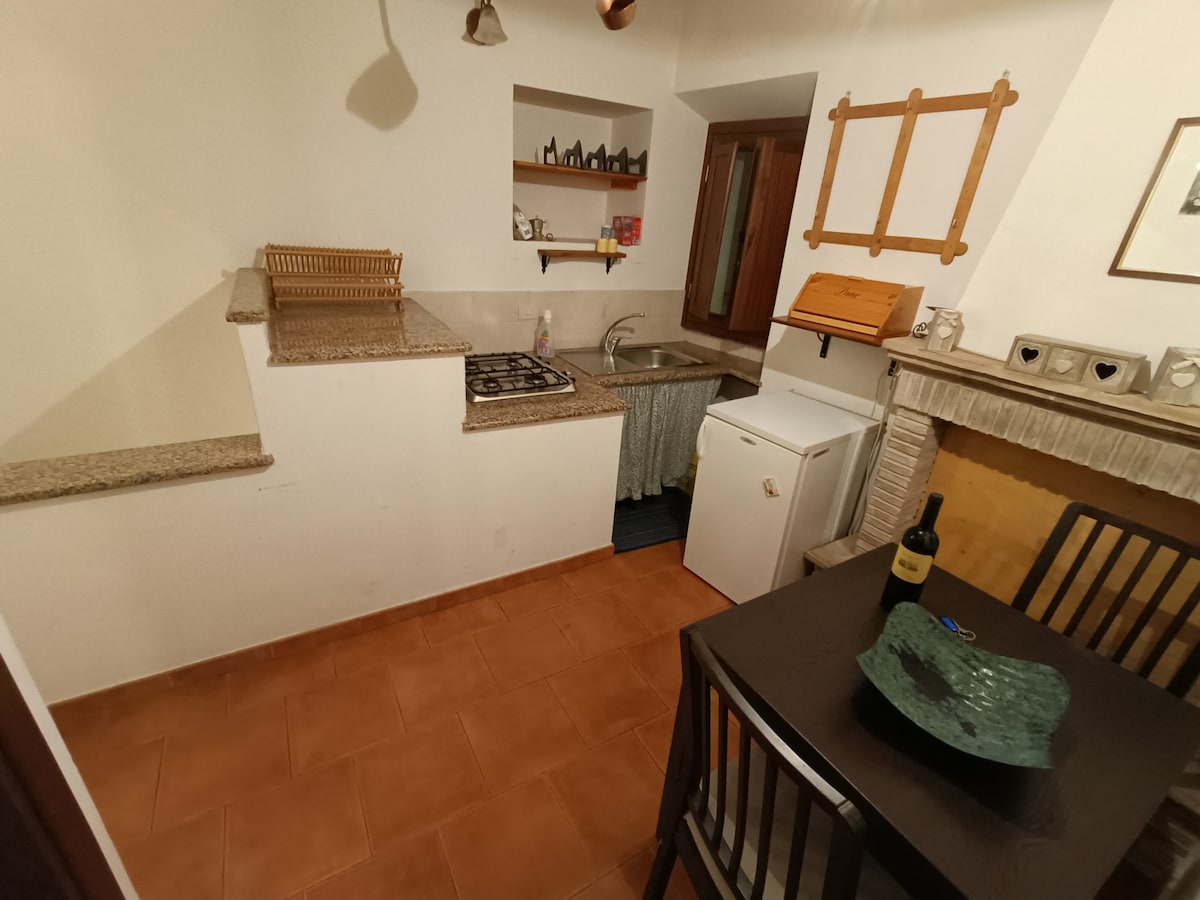 The apartment is two floors below the square, entirely dug into the tuff. Overlooking the valley, it is isolated from the noises of the street, quiet, private, and very welcoming. The tuff walls give it an ancient vibe to transport you to another time. It can be reached on foot, via a footbridge that takes you directly to the square where the property is located. It is perfect for short stays of complete relaxation, but with the fully equipped kitchen you can make the most of it.