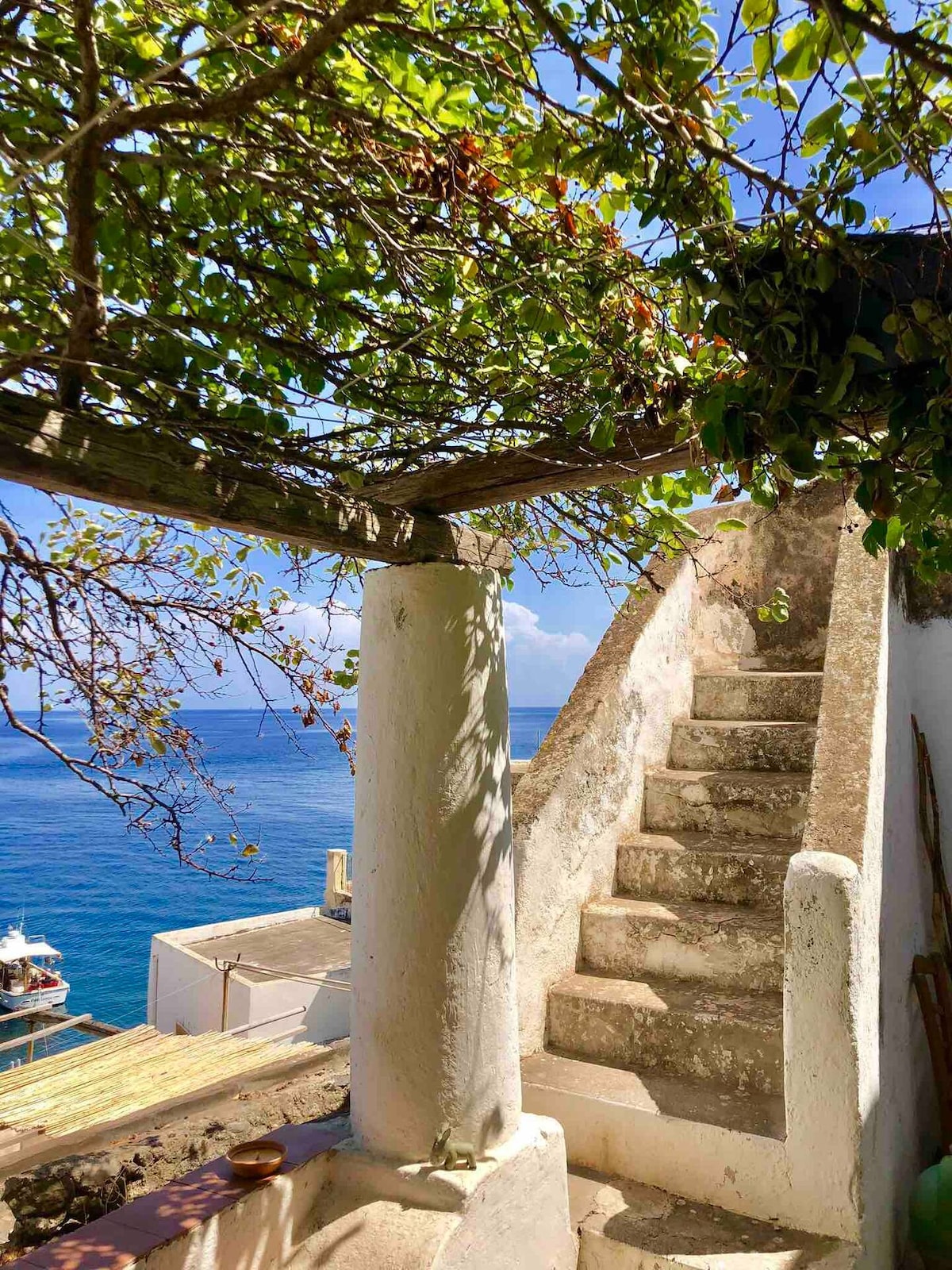 Alicudi, Aeolian Islands, Ancient farmhouse on a still wild island, furnished with island furniture, conservative restoration. The island has no cars, only mules carry luggage and groceries, the house is two hundred meters above sea level. It can only be reached on foot by the mule tracks with stairs (20/30 minutes on foot). An archaic island where nature is sovereign, slow times to connect to. No street lights, only stars and the moon. That's why the minimum stay in the house is seven nights.