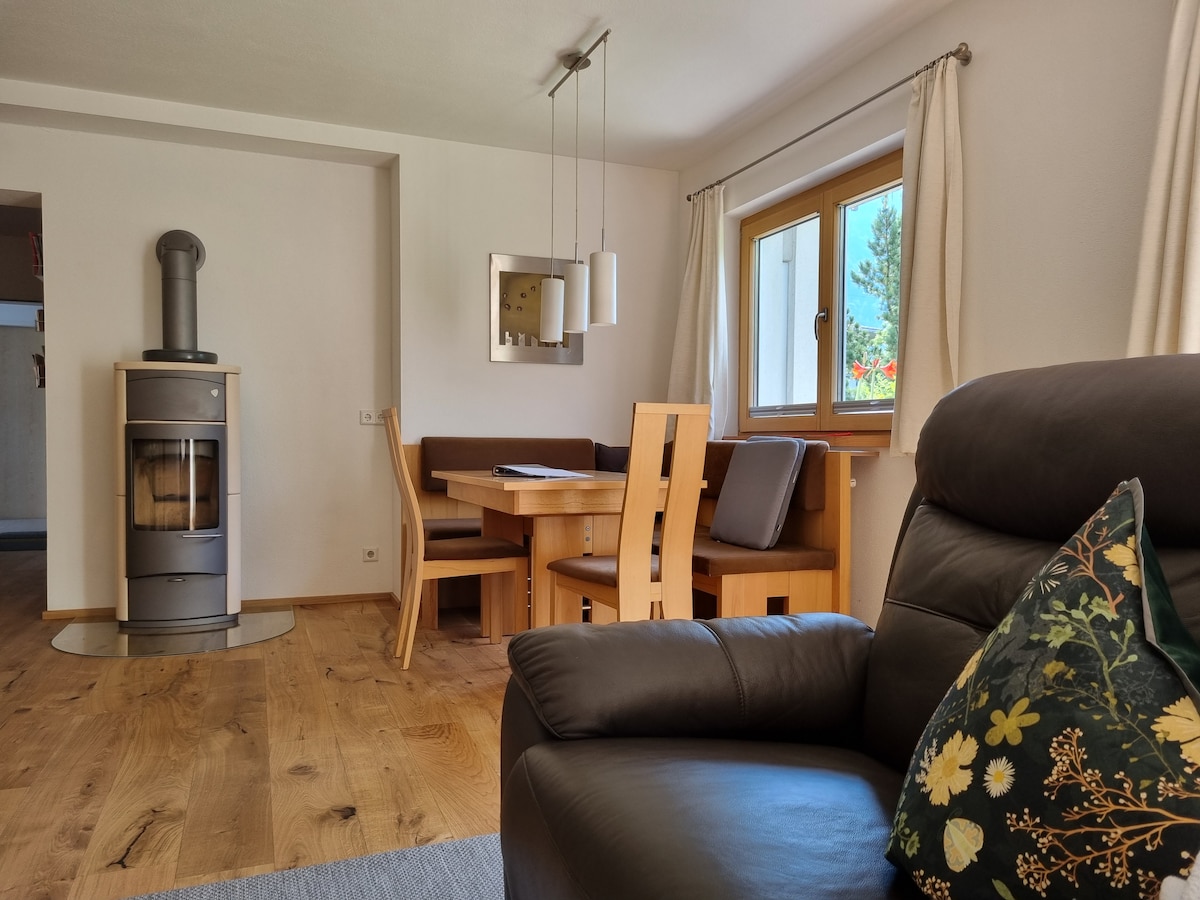 The modern furnished apartment is located on the ground floor of our small family house and radiates Tyrolean coziness. The beautiful view from the living area and terrace over the fields Achenkirch, directly to the Rofan Mountain range and the Seekarspitze, facilitates leaving behind everyday stress and invites you to enjoy and relax. Lake Achen, the largest lake in Tyrol, is 2 km away. The ski resort is within walking distance. The golf course is 1 km away.