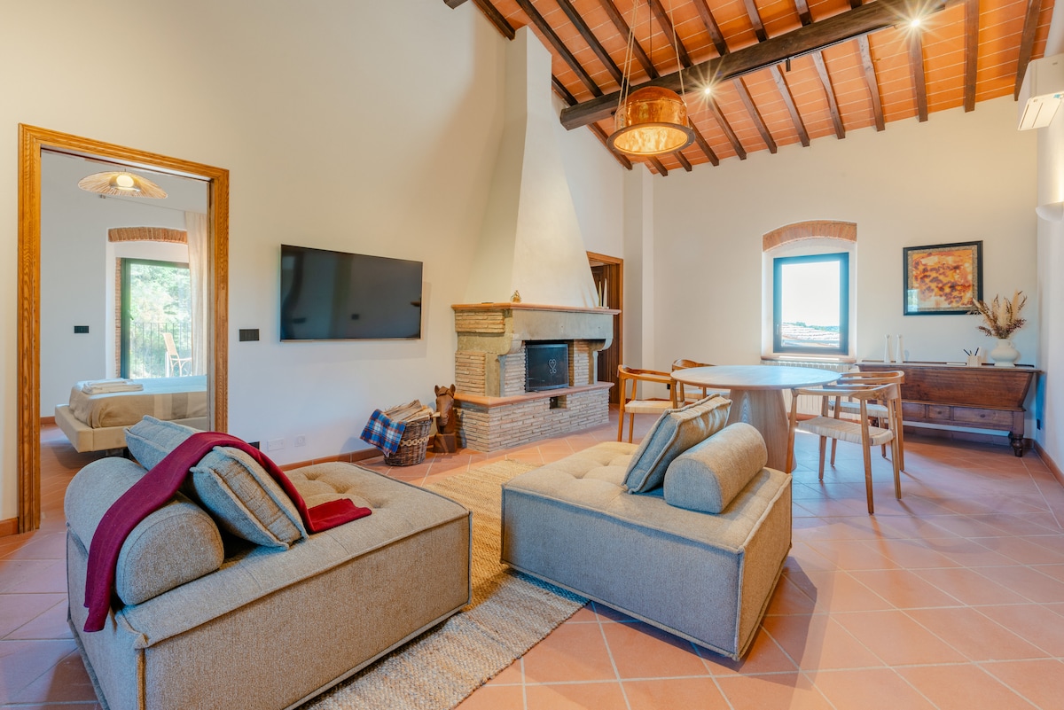 Discover the exquisite Majestic Suite within Villetta dei Fagiani, a sanctuary of opulence elevated on hilltops, offering rare 270-degree views of enchanting surrounding towns. This elegant retreat harmoniously combines historic allure with contemporary comforts, delivering an aristocratic experience for discerning travelers. Immerse yourself in the rich tapestry of Tuscany, where every detail echoes sophistication and splendor. Shuttle service / Food & Drink available on site. Free parking.