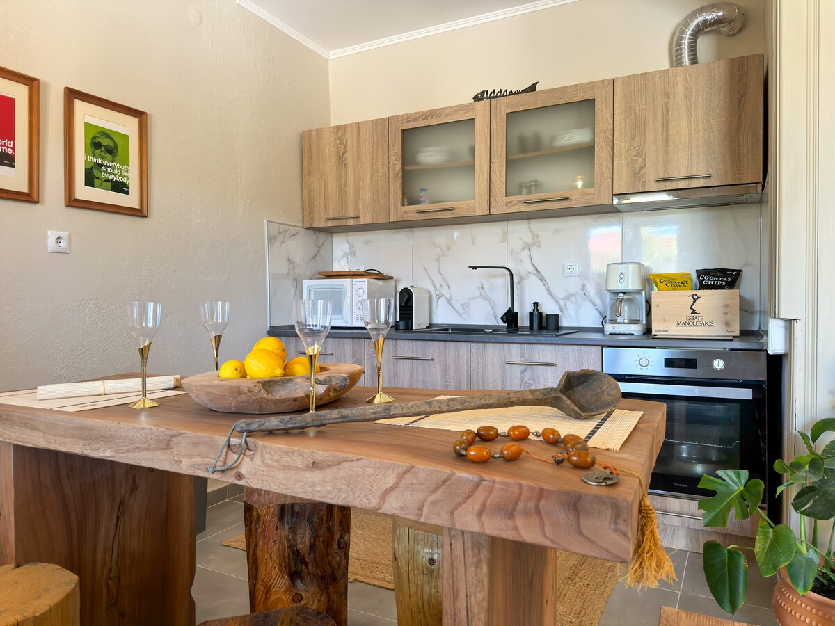 Relax and enjoy your vacation in this calm and elegant space. The house is 200 meters from the sea, 500 meters from super market/food courts and beach bar. It is ideal to relax in a fully renovated house but also to experience the nightlife 5 km away in Asprovalta with many options.