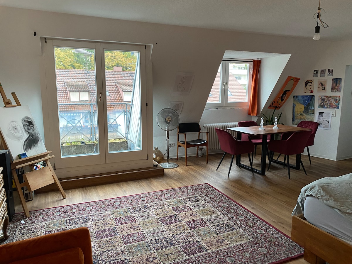 Top renovated one room. Apartment with separate entrance and private sun terrace. A light-flooded room with a small kitchen and a separate daylight bathroom. Very well connected to the city center (U1, U9, U34). In about 5 minutes you are in the center of Stuttgart, at the same time the forest is only 2 "stäffele" (stairs) away from the house. Due to the half-height location, you have a very beautiful view over the city. Our house is inhabited by us as a family with four people.