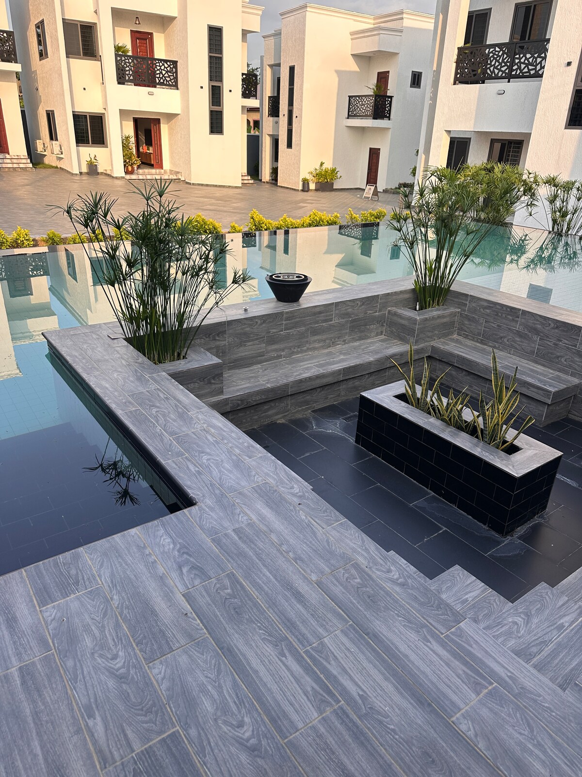 Fun night with family at this stylish place. Property is in a developed area with access to taxis, food, restaurants and bars. Quiet and serene for relaxation. Airy and modern floor plan, designed for comfort. Large patio. An ultra modern kitchen, equipped and ready for recipes. Kitchen balcony for relaxing/outdoor dining. Comes with laundry including a washer and a dryer. Upscale and high quality fixtures and bath. Each bath has bidet. Master bath comes with jacuzzi. Central water heater.