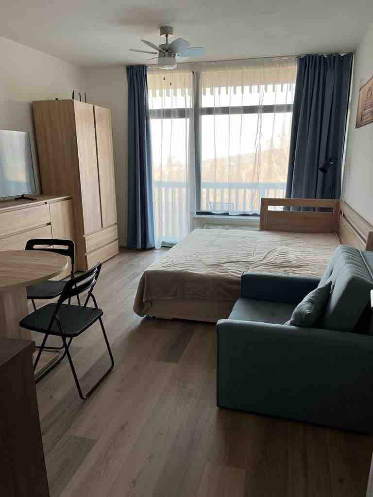 Apartment in the heart of Šumava in the village of Zadov / Stachy. Fully equipped for three adults (or 2 adults and two children). Skiing, cross-country skiing, hiking, cycling in beautiful nature. Pleasant sitting on your own balcony with a view of the valley. Restaurants nearby. Own cellar for storing skis, bicycles. Access to common areas (bike room, ski room). Free parking in the allocated space in front of the building entrance. The apartment is equipped with bed linen and towels.