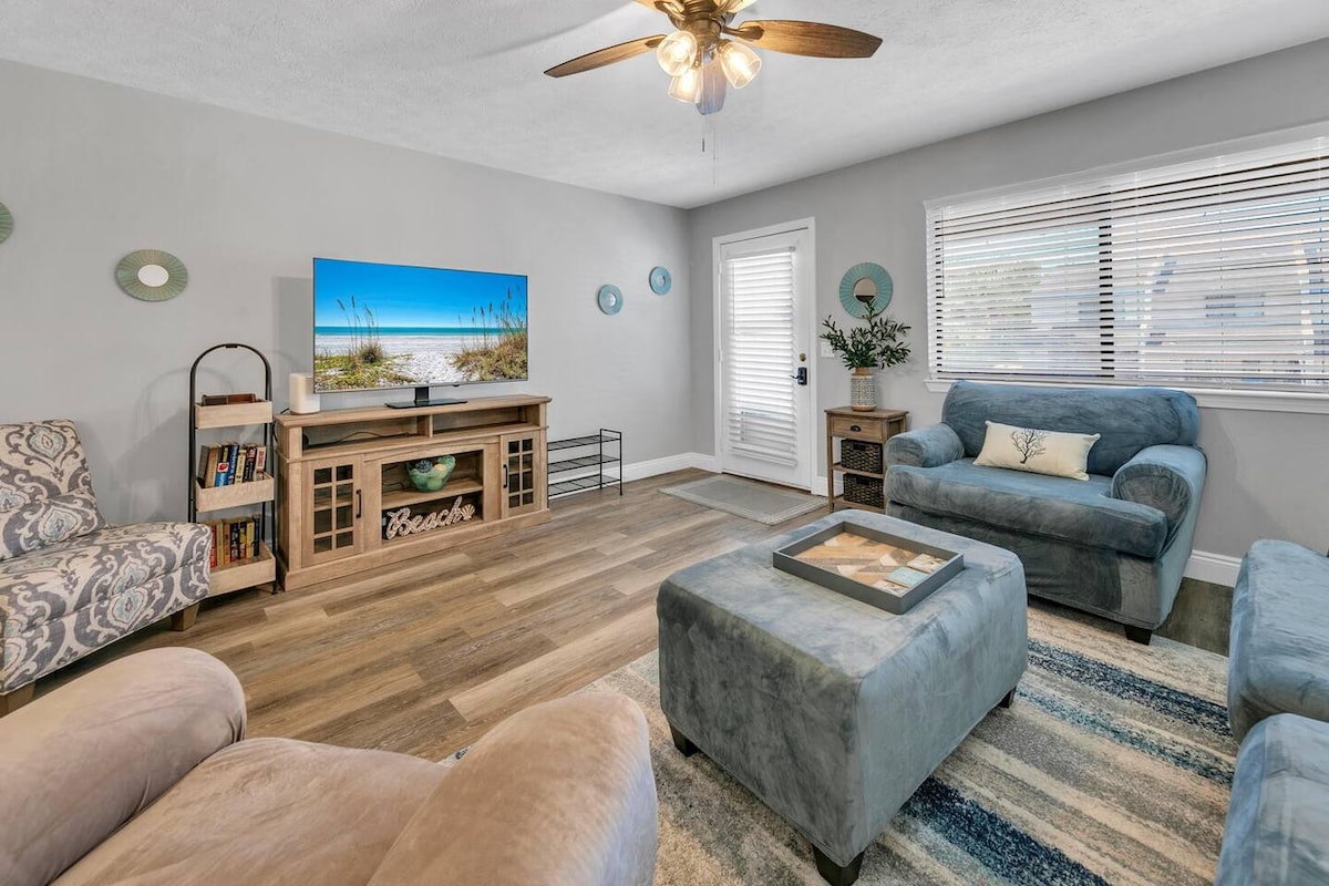 If you are looking for a beachfront townhouse with amazing views and a private beach, look no further than our center unit at Walton Dunes. We are located on a quiet, dead-end street next to Deer Lake State Park. Our complex of 17 townhouses completed an exterior upgrade in 2021 with new paint and railings. Our unit is in the center and was totally renovated by noted designer Ashley Gilbreath. New flooring and a master bathroom upgrade were done in 2023. Beachfront convenience awaits.