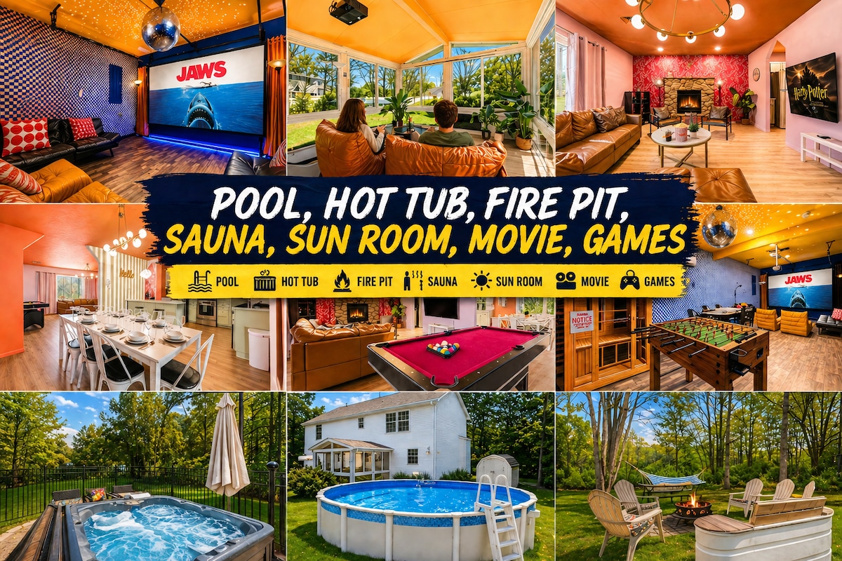 ✨IT'S ALL ABOUT FINDING THE CALM IN THE CHAOS ✨ & making memories .. 🌿4 ACRES OF PRIVACY, TRANQUILITY & WILD WEST CHARM 🌿4 COZY BEDROOMS • 3000+ SQ FT OF PURE FUN 🏡Unique Custom Designed Retreat in the Heart of the Poconos - Stunning Nature & Wildlife yet Minutes from All Major Poconos' Attractions 💖Perfect for Any Group Size - From Romantic Getaways, to Family Reunions, Special Occasions, OR Relaxing with Friends & Loved Ones ⭐Over 100 Indoor & Outdoor FUN Activities for All Ages ⭐
