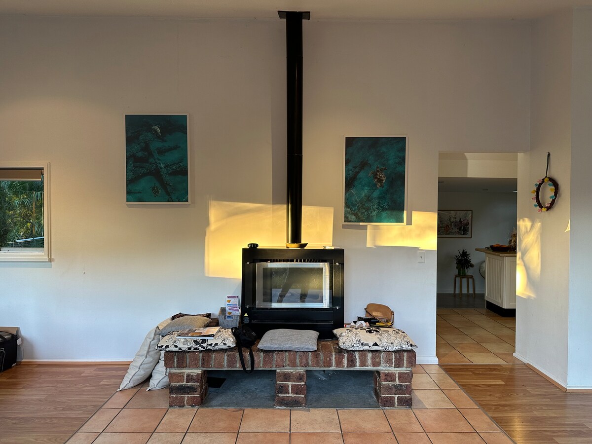 Relax and enjoy nature with beach & national park at your doorstep, far away from hustle & bustle of life. Newly renovated house, family & dog friendly with all the mod cons, perfect to make your stay memorable. Views of nature from every room, whether you lie in bed or the bath this house is open plan, deigned to totally relax and enjoy, your privacy. Birds galore, Kookaburras, Rosellas, Parakeets and walking distance to the water & beach.