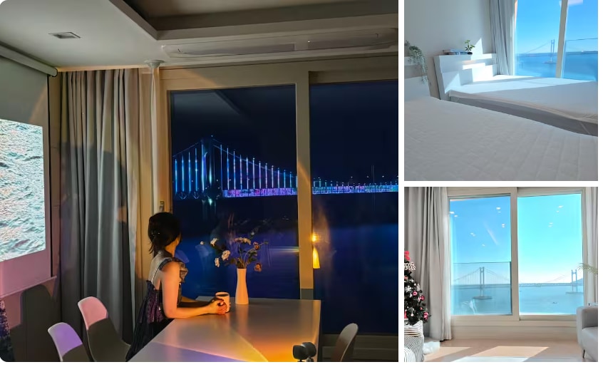 1๋ฑ์์/๊ด์๋๊ตํ์ค์ ๋ทฐ+ํด์ด๋์จํฐ๋ทฐ/3๋ฃธ(๋์์นจ์ค2๊ฐ+๊ฑฐ์ค)/ํธ์นจ๋3/๋ฌด๋ฃ์ฃผ์ฐจ/5์ฑํธํ ๊ธ