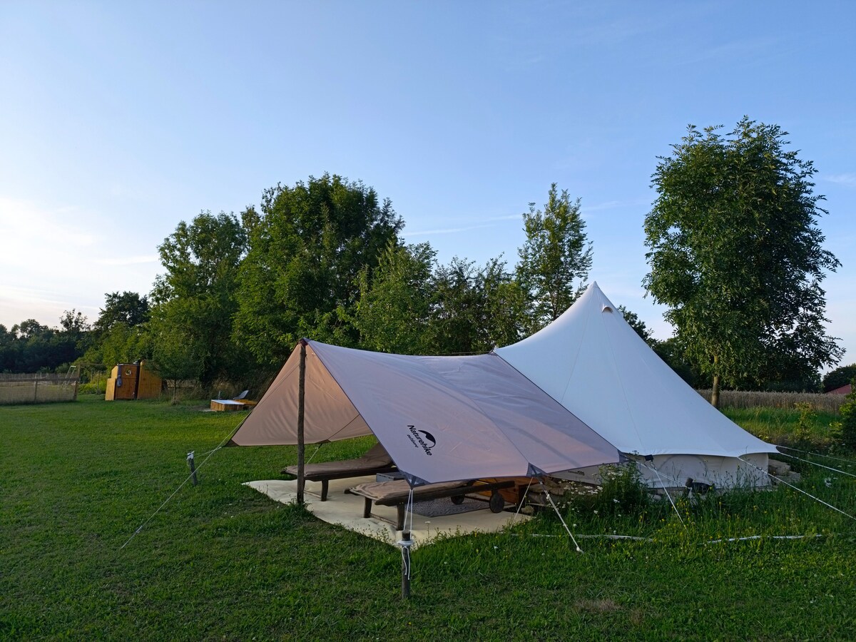 Self-sufficient country life in a glamping tent