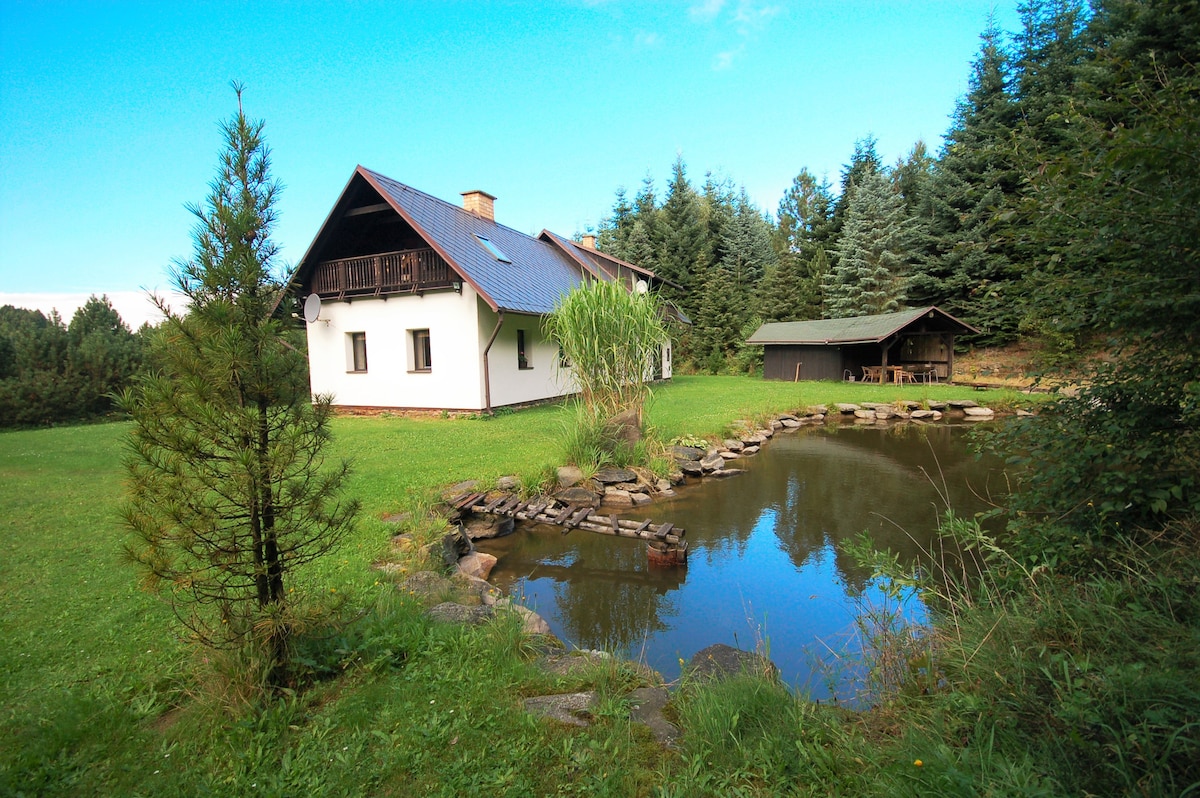 Do you want to spend a few days off in a place that is different from the usual recreation centers? Where the asphalt roads slowly lead, but the forest roads, where the birds🐦 sing in the morning and the foxes say good night? The cottage is surrounded by extensive forests🌲, it is suitable for undemanding clients, for families with children, couples and also groups. There is a worse signal - but you can get through☎️. !!! Beware, it's a cottage, not a **** hotel🤗