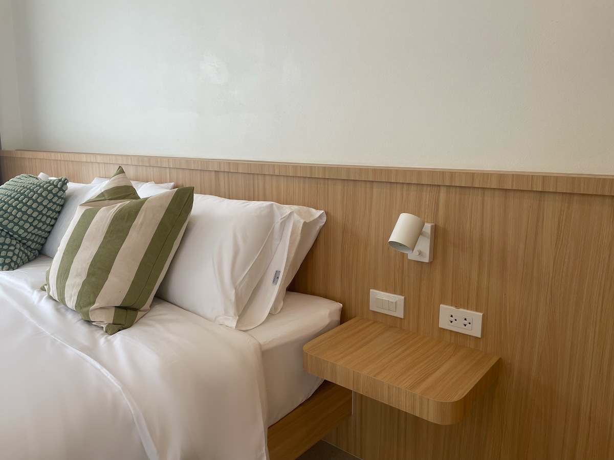Welcome to Qihai Phase 1 Condo by Jomtien Beach Pattaya! The apartment is located in the quiet and convenient Zhongtian area, about 10 minutes walk to the soft sandy beach and sea view.This is more than just a place to stay, it's an immersive vacation experience - the neighborhood is centered around a carefully designed multi-theme pool complex, with multiple pools connected like sapphires, with water features, as if you were staying in a private water park.You can also access the gym and sauna for free to stay active and relax during your trip. This carefully arranged cream style cozy room, with soft tones and a comfortable atmosphere, provides you with the ideal place to relax during your trip.The room is fully equipped: · The bedroom area is equipped with a comfortable double bed, soft and skin-friendly bedding. · Separate wet and dry areas in the private bathroom, 24-hour hot water supply; · Fully equipped open kitchenette: fridge, microwave, induction cooker, basic kitchen utensils, easy to make simple meals. · Daily necessities such as disposable toothbrushes, slippers, tissues, laundry detergent, etc. are prepared for a worry-free stay; · The balcony has a washing machine and a hanging rack that can be raised and lowered, which is very convenient.The view outside the window is open - there is a lush green belt nearby, and you can see the sea and sky in the distance, with a view in the morning and evening. It has the convenience and privacy of apartment living, as well as the leisure and romance of a resort.Whether it's a couple's getaway, a small family vacation, or a group of friends, you can find comfort and joy here. Looking forward to adding a sense of peace and beauty to your time on the beach in Pattaya!