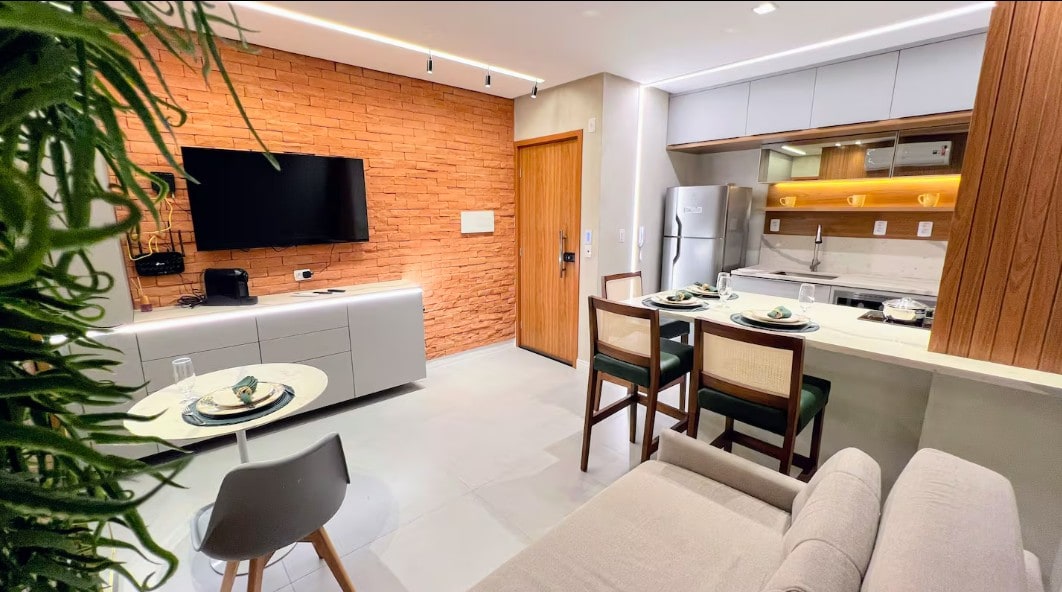 Flat único para relaxar, possui todo conforto e segurança que você procura. Equipamentos: -Cooktop de indução, Airfryer, Microondas, purificador de agua gelada e natural, cafeteira elétrica -Geladeira, Sanduicheira, Panelas, Copos, Pratos, Talheres, Xícaras -TV com fire stick, Ar condicionado, 01 Cama casal, 01 cama solteiro, 02 colchões de solteiro, ventilador, rede na varanda, chuveiro quente. -Wi-fi -Mesa na varanda e na cozinha -Lençóis, Tolhas e Travesseiro