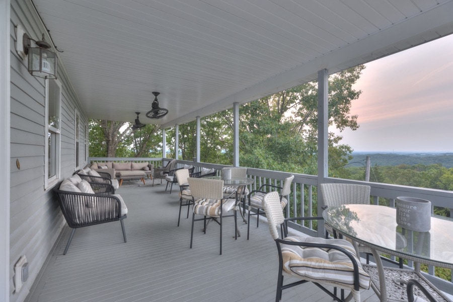 Enjoy 3- Deckings! A covered porch, Sunrise, over the mountain Privacy, Secluded on 16 acres Dog friendly! Game room for kids & adults! Fire Pit and trampoline Jacuzzi tub in master on main floor, Easy for elderly people; 2 steps up on the porch, bottom porch, 1 step up to a bedroom. Kitchen well stocked Be together, but have separation Easy access to everything 5 min. Walmart 8 min. downtown Branson & River Walk 7 min. to Silver- Dollar City 8 min. to strip where all the shows are