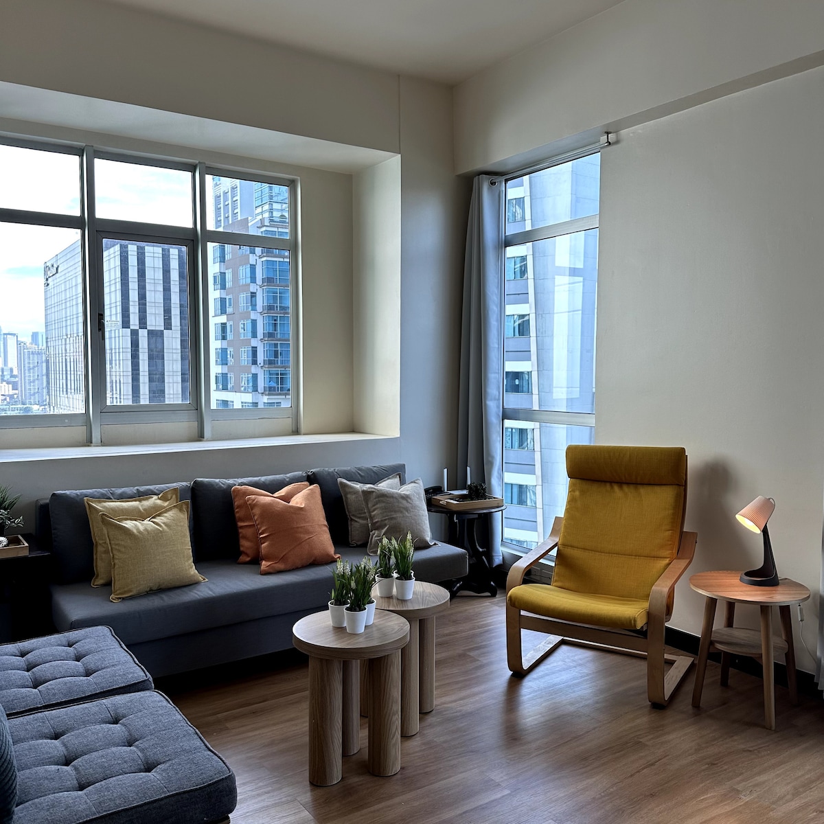 Our suite is inspired by a minimalist industrial design—a perfect blend of style and comfort right in the heart of the BGC. It offers a queen-size bed, comfy recliner chair and fast 200mbps WiFi. This unit also offers extra value with: • 🧴 Body wash, shampoo & small bar soap • 🪥 Dental kit • ☕ Coffee, creamer & sugar • 💧 Complimentary Bottled water • 🛏️ Fresh linens & towels Stay in style with thoughtful touches that make your Uptown BGC experience better. ✨