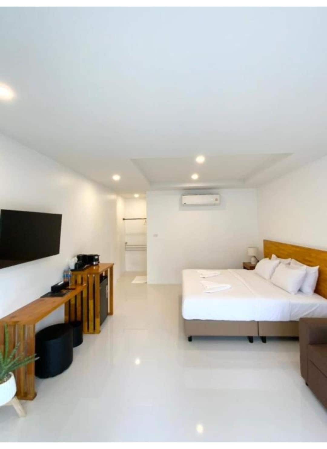 Stylish Room with full Kitchen and bath One Queen bed Outside covered deck with table and chairs Gated driveway Fenced private yard with no need for contact with other guests 800 meters to peaceful Bangtao Beach. 70 meters from Village New, beautifully decorated Build in fine wood cabinets Great views from large windows