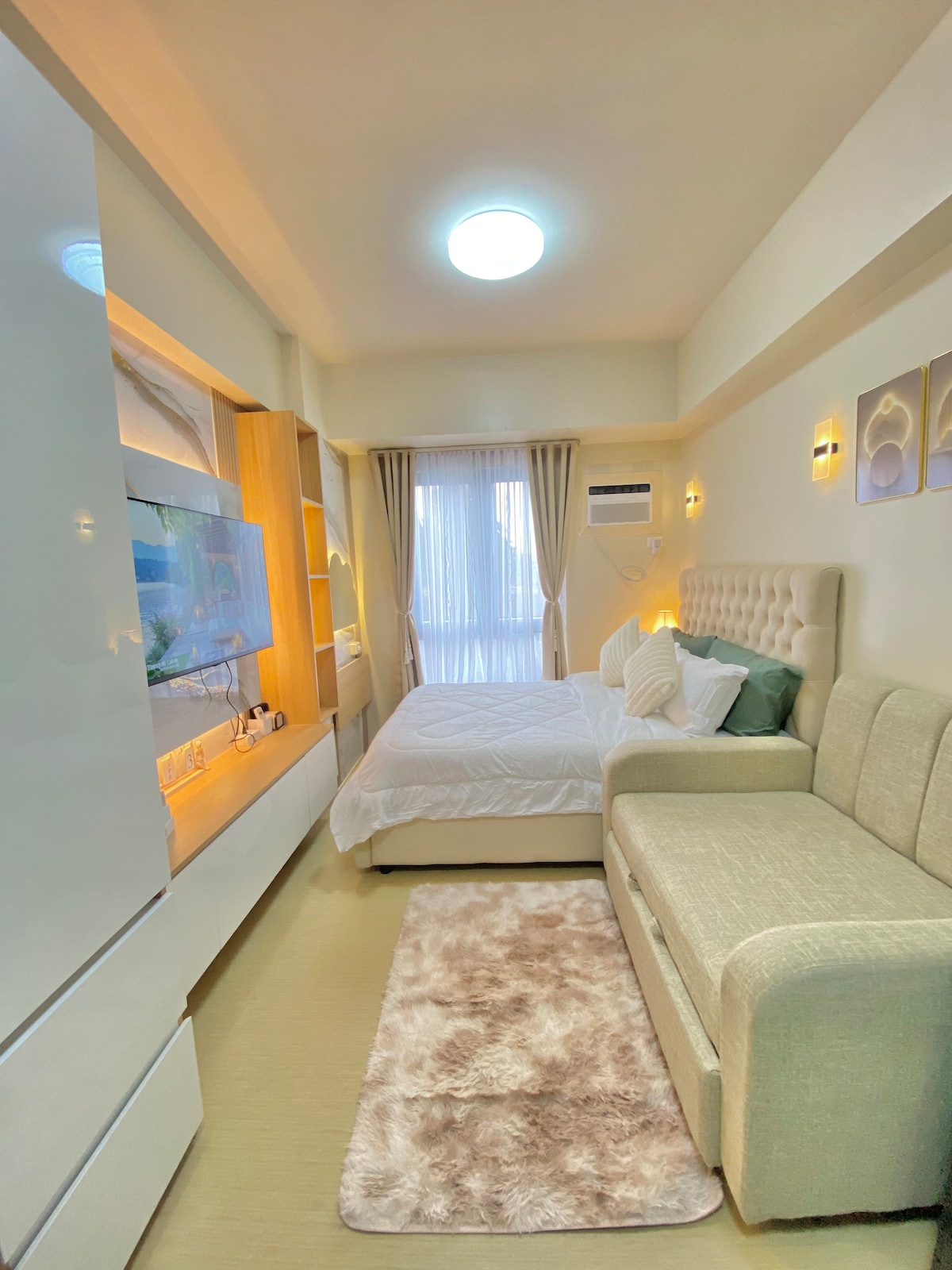 Spacious modern minimalist design, fully furnished Studio Unit located @ the 20th floor of the Aeon Towers. Free use of pool and gym for guests. Very easy access to public transport from this centrally located place, 3-minute walk to Abreeza Mall (With over 300 stores and offers banking, premier retail, dining, entertainment). 18-minute drive to Davao City airport. Equipped w/ High-Speed Fiber Optic Internet Connection which is ideal for travelling professionals that connects to VPN.